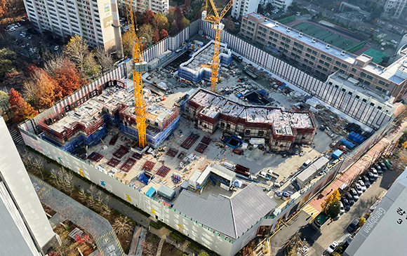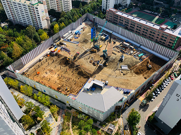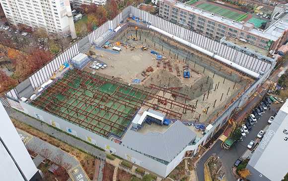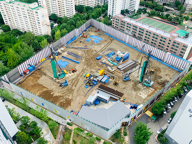 PHC파일공사를 완료하고, 지하층 터파기 공사 및 지하1층 철골 공사를 진행하고 있습니다.