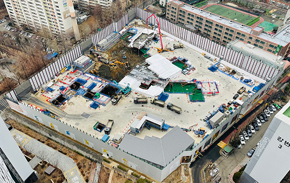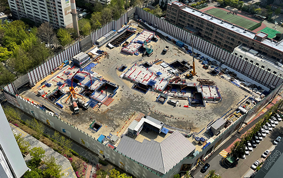 당현장은 2020년 4월에 공사 착수하여, 현재 지하층 터파기 공사 및 지하1층 철골 공사를 진행하고 있습니다.