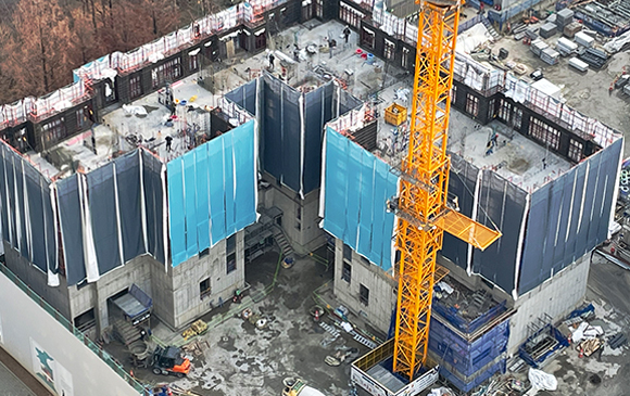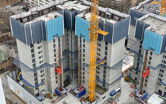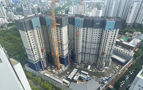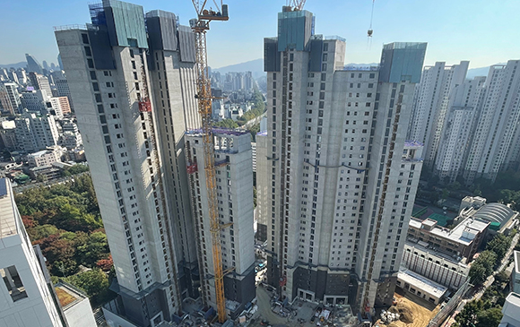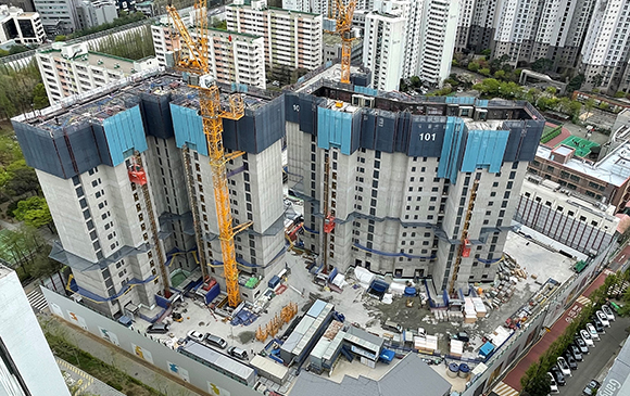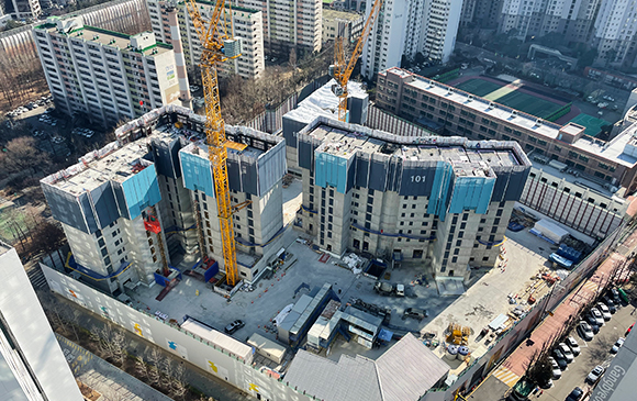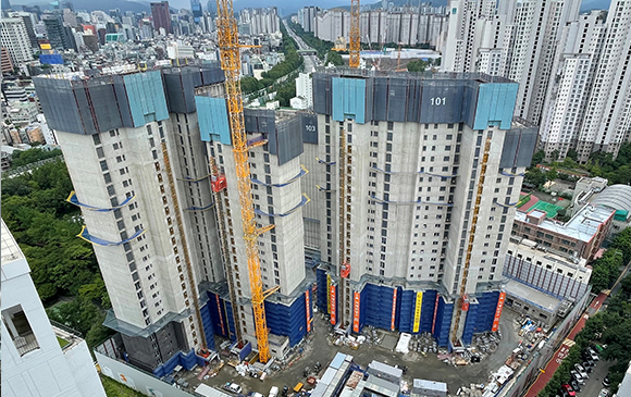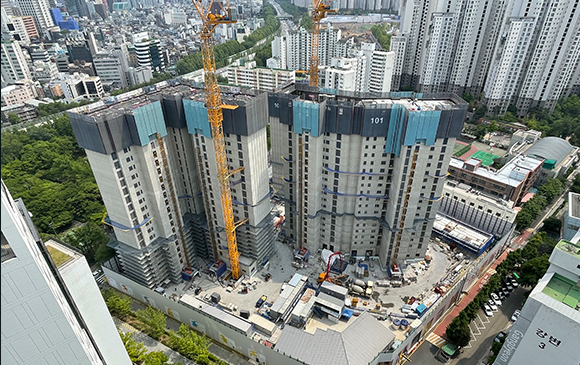 당 현장은 현재 아파트 마감공사 및 지하주차장 마감공사를 진행하고 있습니다.