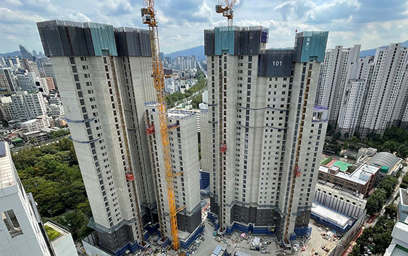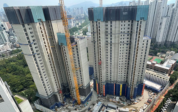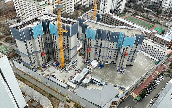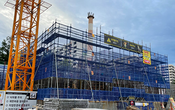 당 현장은 현재 아파트 옥상구조물 공사 및 마감공사,