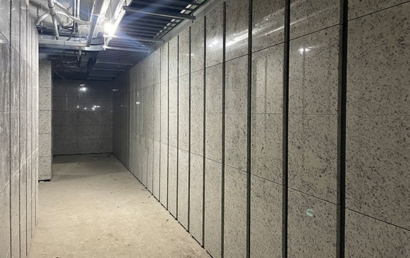 - 문주 석재 작업, 지하 동출입구 석재 작업