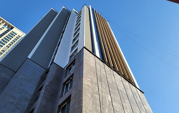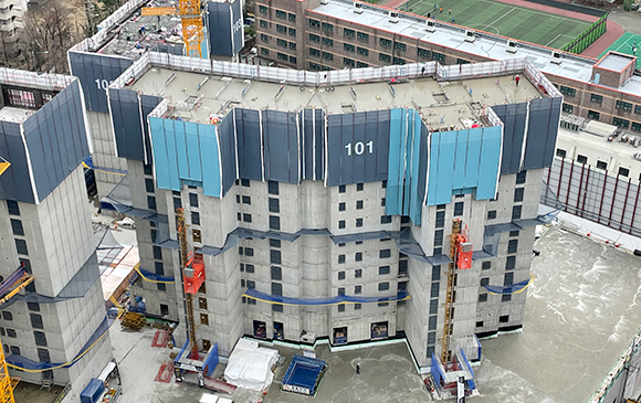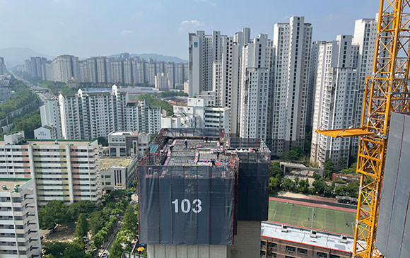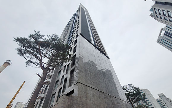 - 103동 외벽 커튼월룩 및 옥상 루버 설치 작업