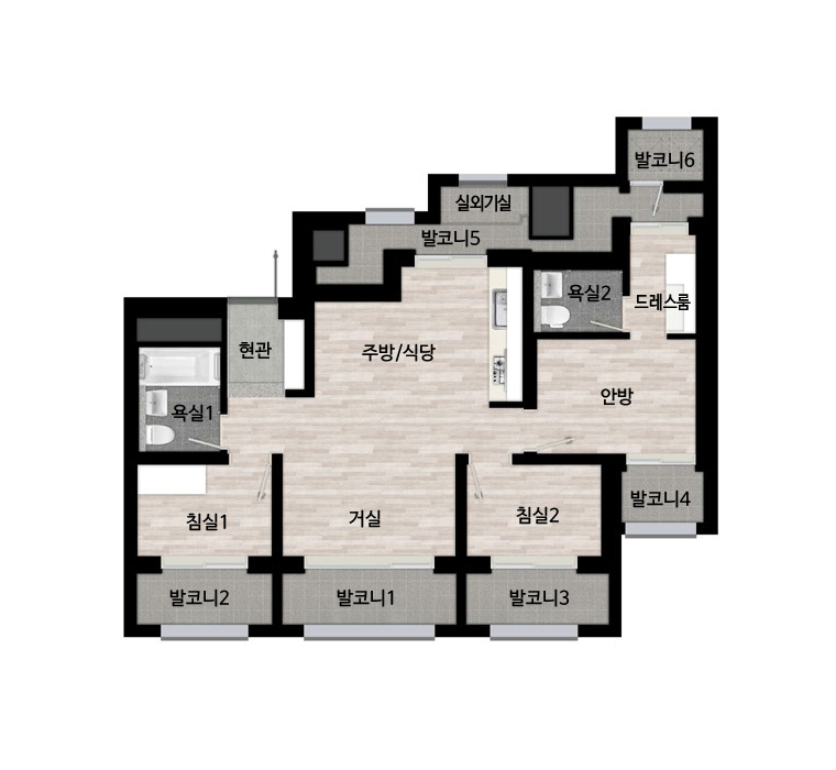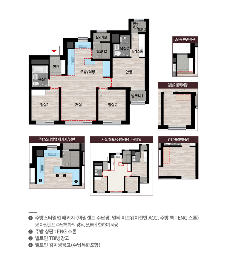 ※ 단위세대는 대칭형으로도 시공되어 일부 거실, 안방, 침실 주방의 향이 달라질 수 있으니 필히 확인하시기 바랍니다.