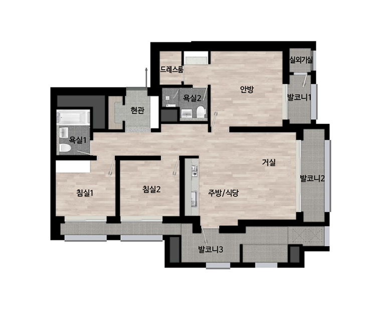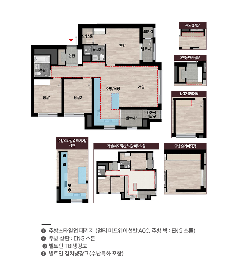 ※ 단위세대는 대칭형으로도 시공되어 일부 거실, 안방, 침실 주방의 향이 달라질 수 있으니 필히 확인하시기 바랍니다.