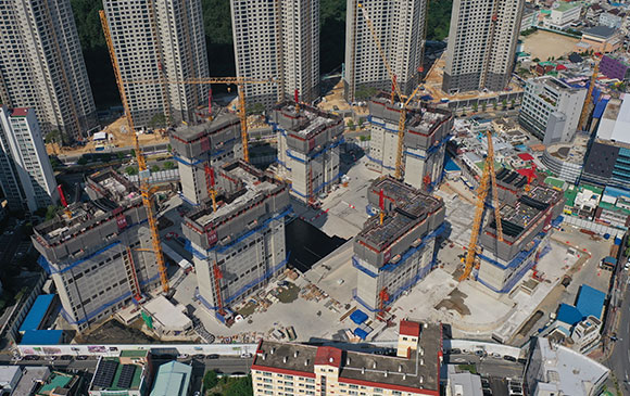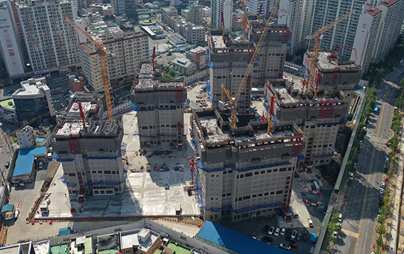 당 현장은 2021년 08월 착공하여 현재 골조공사 完(부대시설 골조 中) 및 세대 내·외부 마감공사를 진행하고 있습니다.