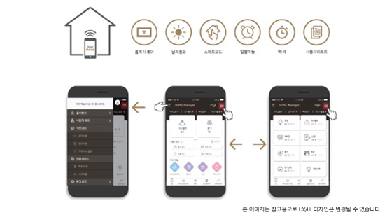 - 외부에서 인터넷, 휴대폰을 이용하여 조명, 가스, 난방온도 조절