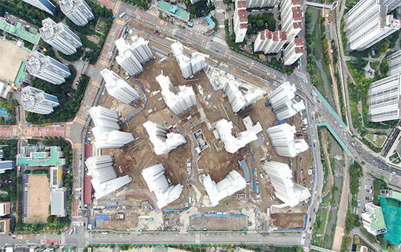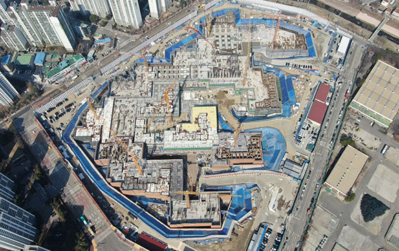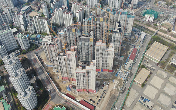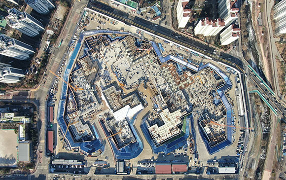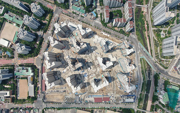 -. 철근콘크리트공사 : APT 및 주변 지하주차장 지붕층 ~ 3F 바닥 콘크리트 타설,