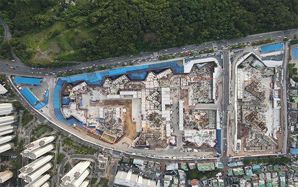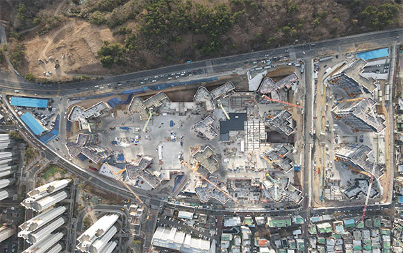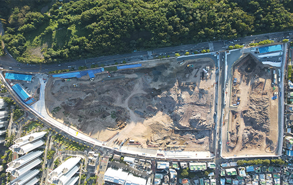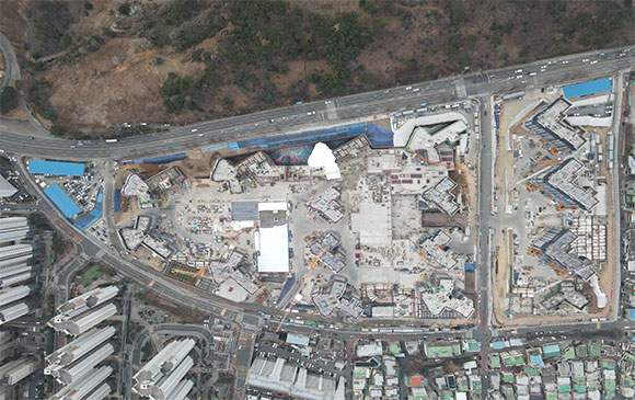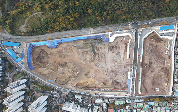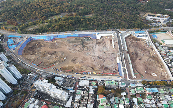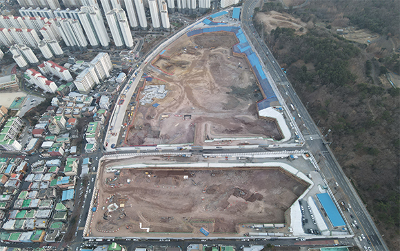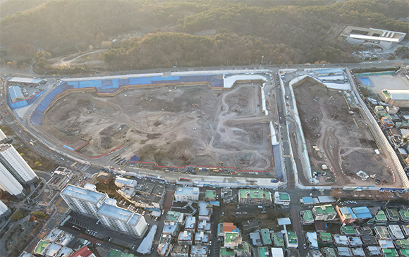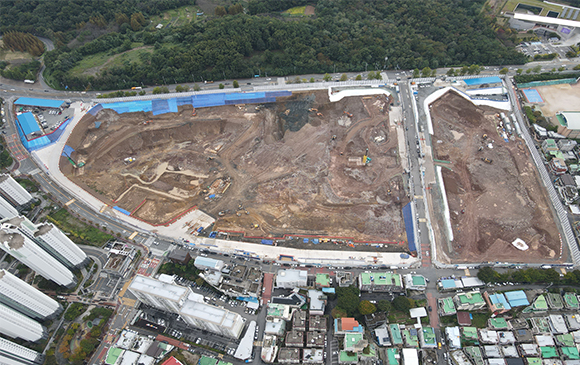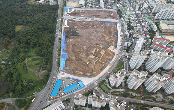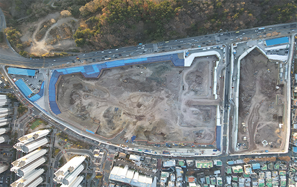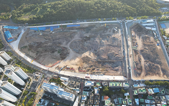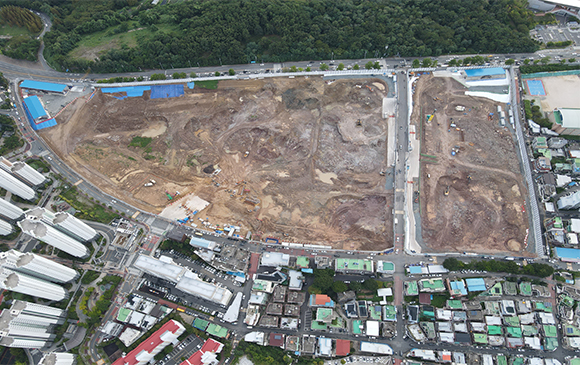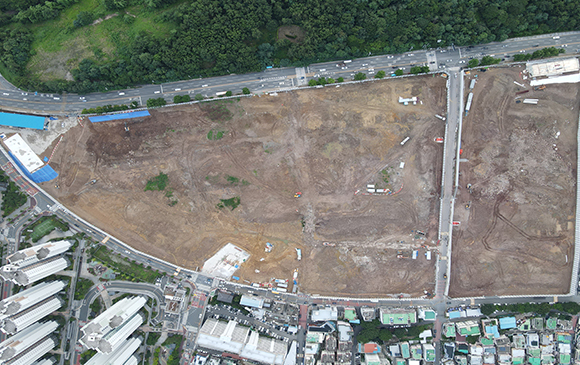 -. 단지 내부 부지 정리 및 가설도로 개설 중